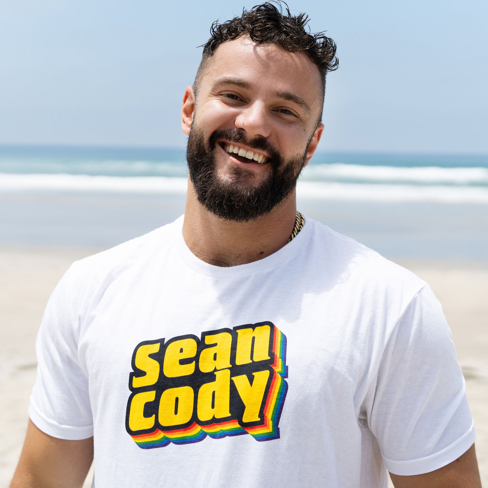 Show your love with the SeanCody Unisex Pride Tee! This tee is made with American-grown cotton and designed to fit all shapes and sizes. Ultra soft and a tearaway tag make it perfect for layering or lounging around in. Take pride in what you wear with this vibrant branded t-shirt.